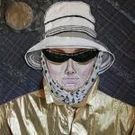 Power Up, self portrait as a man, 2008, discarded clothing, 19 x 19 in